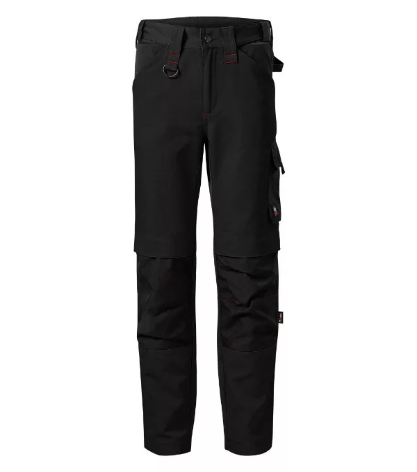 szennyeződést taszító felületi kezelés, ívelt elasztikus derékpánt, lépésbetét 6 % elasztánnal, 10 muntifunkcionális zseb, térdvédő zsebek, szellőzés a térd hátsó részén, műanyag D-gyűrű , kalapács hurok, erősen ellenálló CORDURA® anyag 01 színben, kontraszt elemek, meghosszabbítható nadrágszárak, EN ISO 13688, EN 14404 + A1 szabvány szerint tanúsítva (2. típus, 1. szint), A99 térdvédővel kombinálva