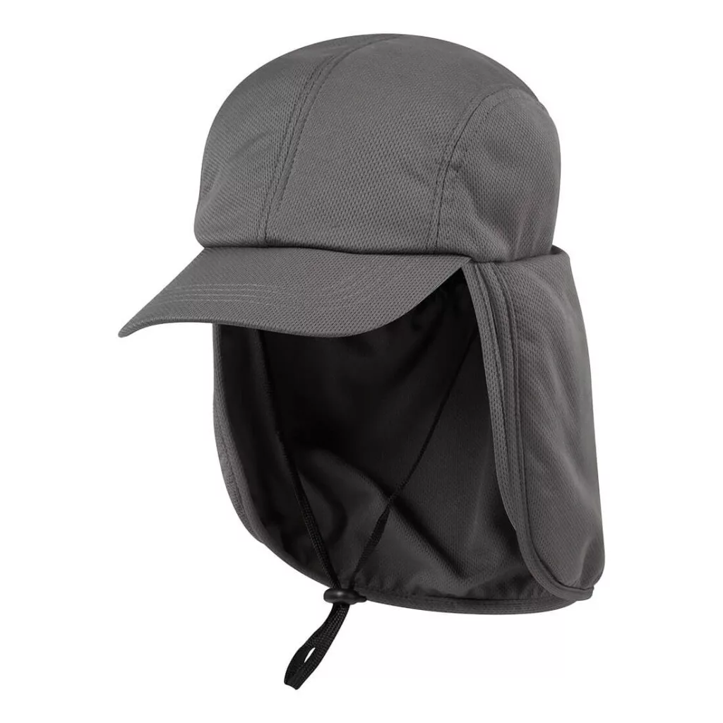Nedvszívó, hűtő és szárító tulajdonságokkal, 50+ UPF értékű anyaggal (az UV sugárzás 98%-át blokkolja) és a biztonságos illeszkedésért állítható pántokkal rendelkező sapka, amely hűvösen tartja viselőjét akár 8 órán keresztül és védi a nyakat és a füleket a naptól. Áztassa vízbe az aktiváláshoz!