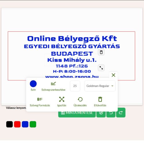 Online tervezőfelület – Könnyen kezelhető felületünkön megadhatod a kívánt szöveget, és azonnal látod is, hogyan fog kinézni a kész bélyegződ.