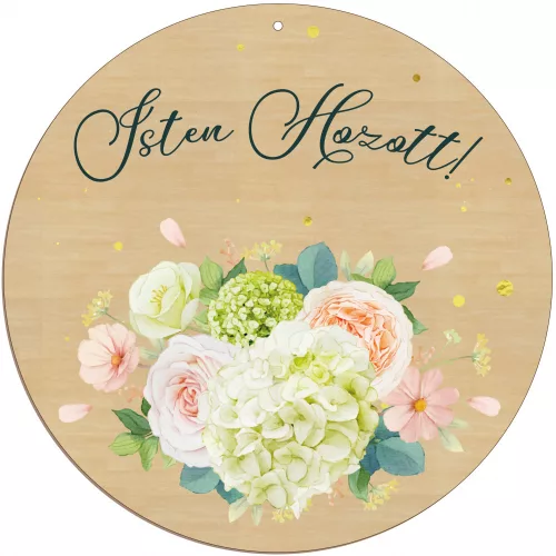 Fából készült ajtódísz Isten Hozott Virág mintával
