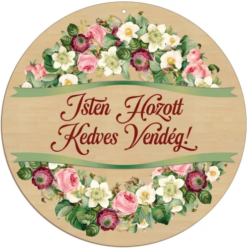 Fából készült ajtódísz Isten Hozott rózsa mintával