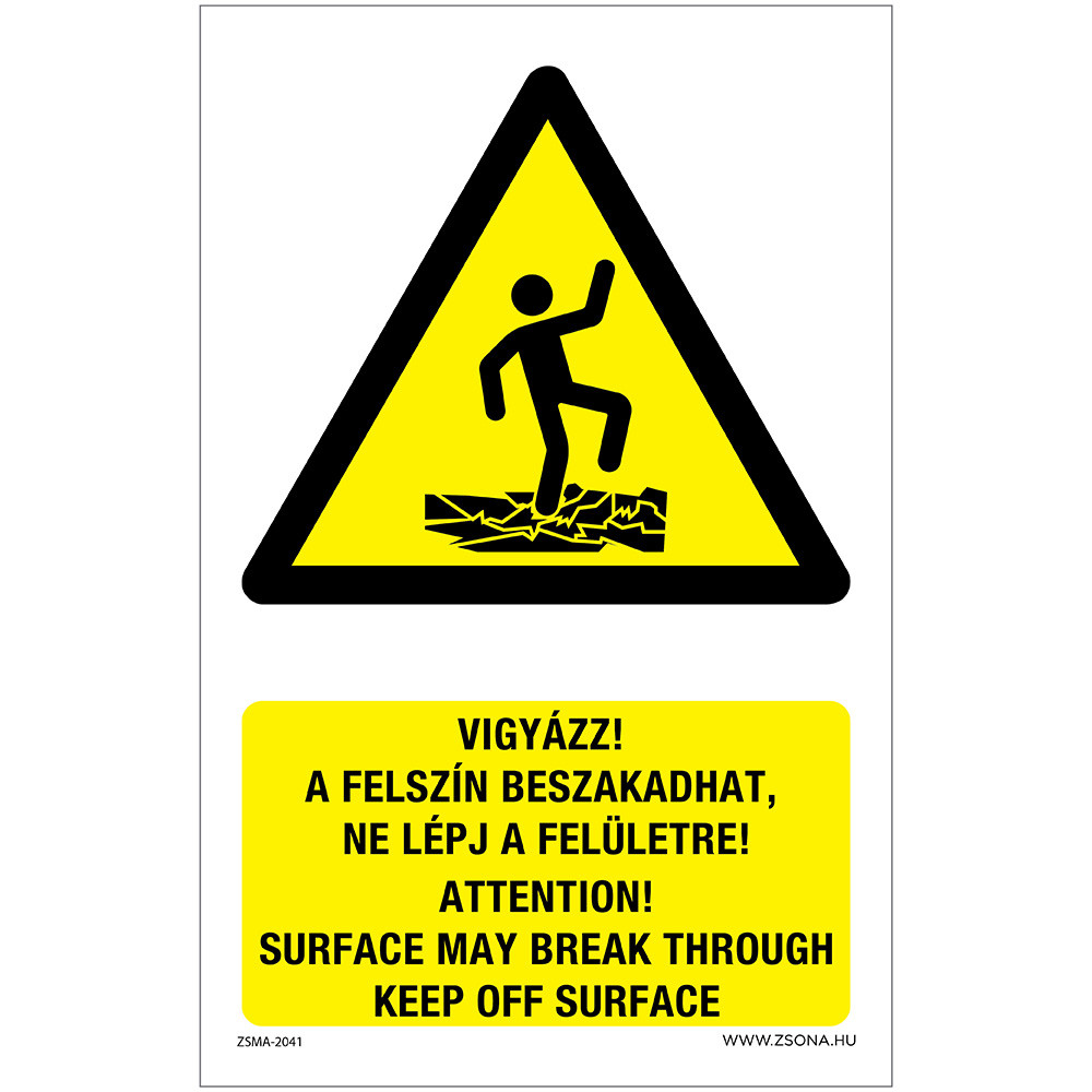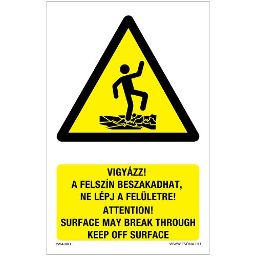 Vigyázz A felszín beszakadhat, ne lépj a felületre Műanyag tábla 160x250 mm