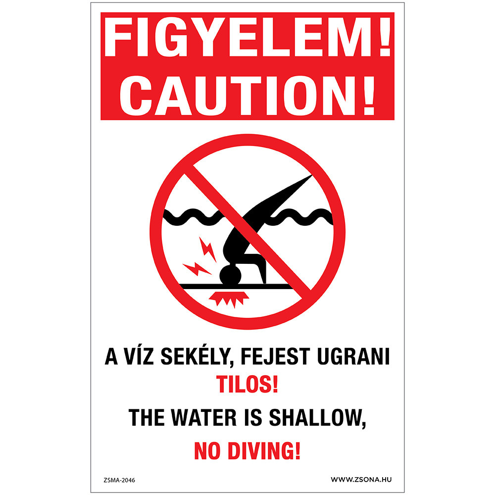 Figyelem A víz sekély, fejest ugrani tilos Alumínium tábla 160x100 mm
