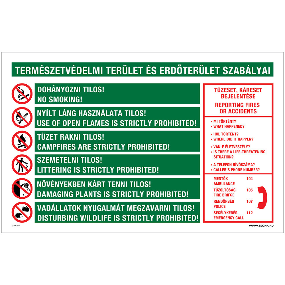 Természetvédelmi terület és erdőterület szabályai Öntapadós matrica 160x250 mm