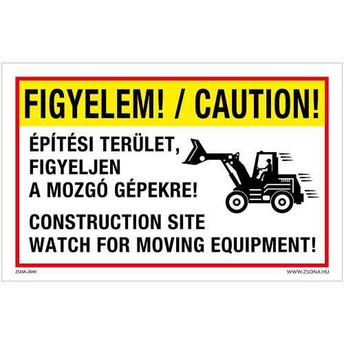 Figyelem Aktív építési terület, figyeljen a mozgó gépekre Öntapadós matrica 160x250 mm