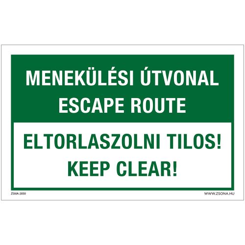Menekülési útvonal, eltorlaszolni tilos Alumínium tábla 160x250 mm
