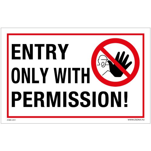 Belépés csak engedéllyel!-Entry only with premission! Öntapadós matrica 160x250 mm