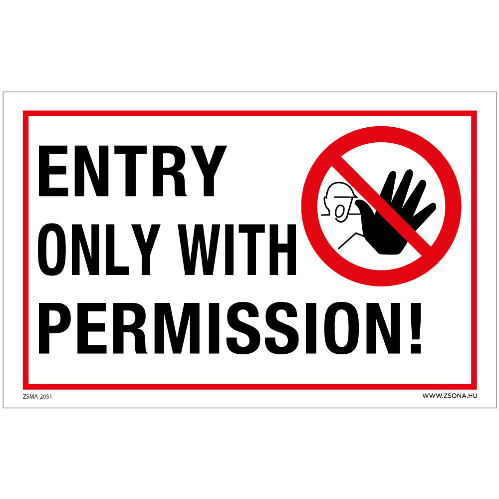 Belépés csak engedéllyel!-Entry only with premission! Öntapadós matrica 320x500 mm
