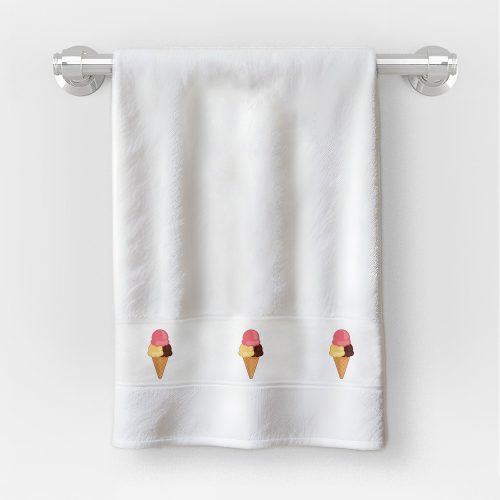 Kéztörlő 30x50 cm méretben Ovis jellel Fagyi három gombócos mintával