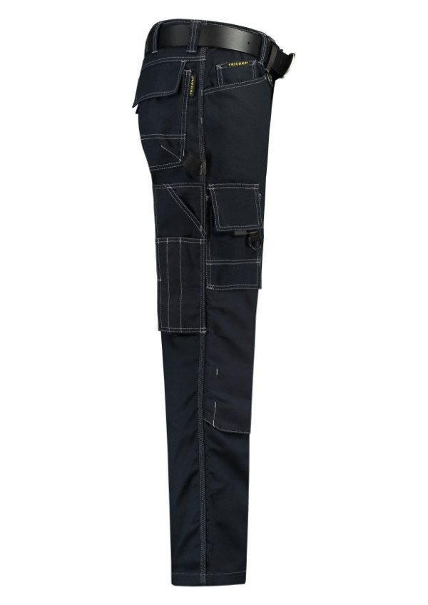 alacsony derék, kalapács hurok, muntifunkcionális zseb, D gyűrű, T90 térdvédővel használható, CORDURA® térdvédő, meghosszabbítható nadrágszárak, 45, 47, 49, 51, 53, 55 méretek extra hosszúak, az öv nem része a csomagnak, Tricorp cikkszám: 502009