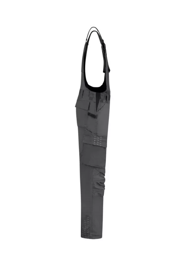 övrész elasztikus oldalakkal, állítható pántok elasztikus részekkel és kapoccsal , muntifunkcionális zseb, CORDURA® anyaggal megerősített térd, fényvisszaverő elemek, meghosszabbítható nadrágszárak, Tricorp cikkszám: 752003,