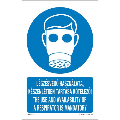 Légzésvédő használata, készenlétben tartása kötelező Öntapadós matrica 320x500 mm